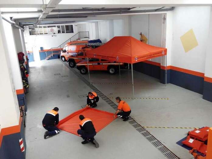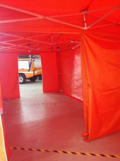 Se trata de dos carpas plegables, una de 3x2 metros y otra de 4,5x3 metros, que pueden ser fácilmente instaladas y transportadas en el caso de que fuera necesario para una emergencia o suceso. Hasta ahora solo contaban con una caseta de 45 metros cuadrados, pero que prestaba principalmente servicios como hospitalito.