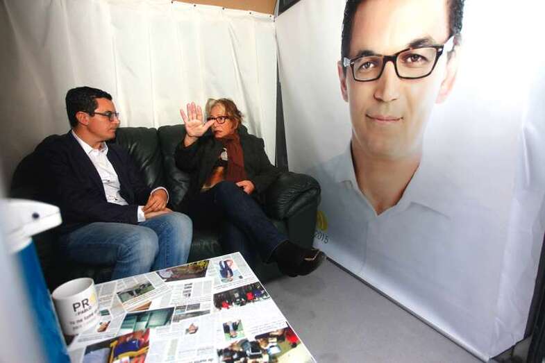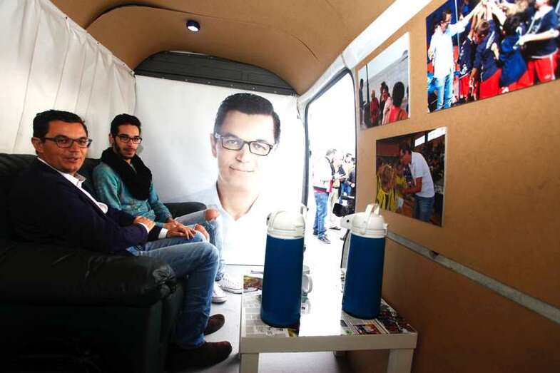 Pablo Rodríguez y un vecino conversan en el interior de la nueva oficina móvil (Foto TA) Pablo Rodríguez y un vecino conversan en el interior de la nueva oficina móvil (Foto TA)