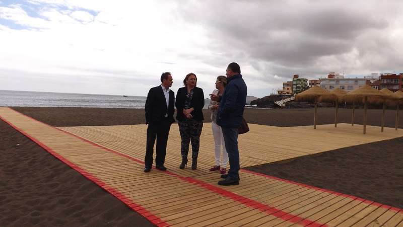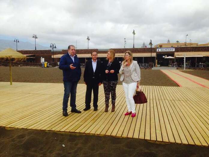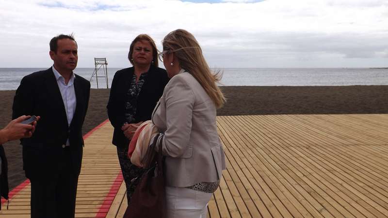 Telde.- Melenara es ya una playa totalmente accesible. Esta mañana, tras la finalización de las obras financiadas por el Cabildo de Gran Canaria a través de la Consejería de Cooperación Institucional, una comitiva de mandatarios municipales e insulares -integrada por la alcaldesa Mari Carmen Castellano, el consejero Antonio Hernández Lobo y los concejales Juan Martel y María González Calderín- supervisaba las actuaciones.