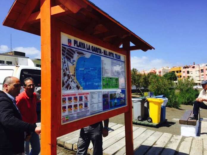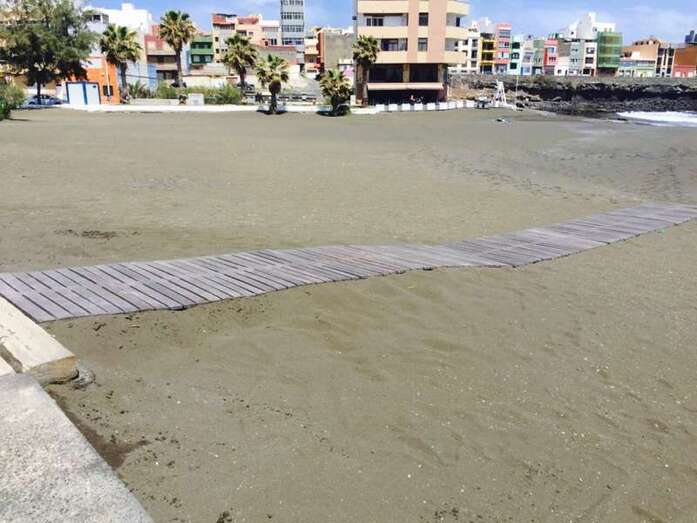 El nuevo material colocado en la playa completa los servicios ya instalados en el mes de marzo, como son las dos plataformas solarium de madera, y remata los trabajos de adecentamiento realizados en los parterres existentes junto a la playa. Las obras se enmarcan dentro del programa acometido por el Ayuntamiento de Telde en el Distrito Costa para dar repuesta a las peticiones de la ciudadanía.