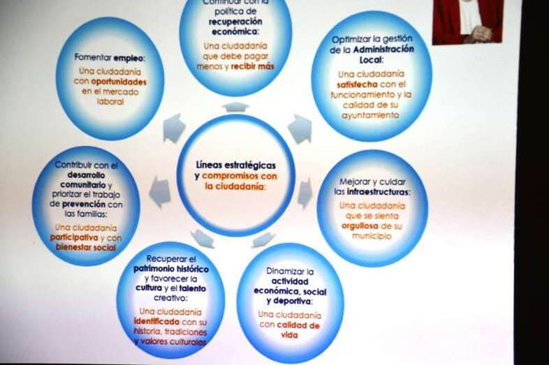 En concreto ha apuntado durante su intervención que el Partido Popular va a defender siete grandes compromisos con la ciudadanía que son el fomento del empleo, el contribuir con el desarrollo comunitario y priorizar el trabajo con las familias, recuperar el patrimonio histórico y favorecer la cultura y el talento creativo, dinamizar la actividad económica, social y deportiva del municipio, mejorar y cuidar las infraestructuras, optimizar la gestión de la administración local, y potenciar las políticas de recuperación económica.