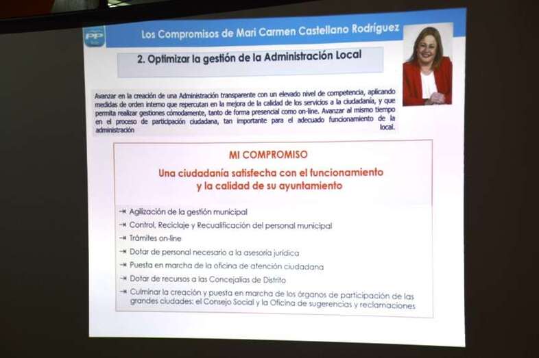 Telde.- La candidata por el Partido Popular (PP) al Ayuntamiento de Telde, Mari Carmen Castellano, ha dado hoy a conocer las líneas estratégicas de su partido para las próximas elecciones municipales del 24 de mayo.