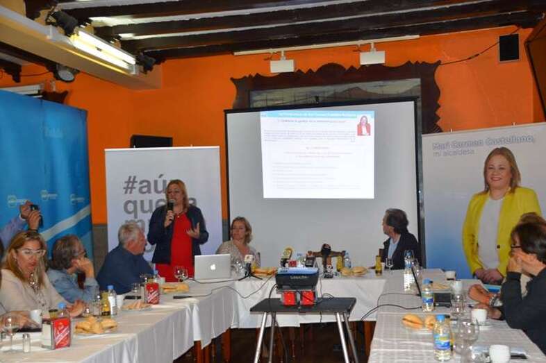 En un desayuno informativo celebrado en El Casino La Unión, en el que ha estado acompañada por la secretaria general del PP en Telde y número 2, Sonsoles Martín, y por el número tres en lista, el ex concejal José Suárez. ha marcado la hoja de ruta que el Partido Popular seguirá para repetir gobierno en el Ayuntamiento.