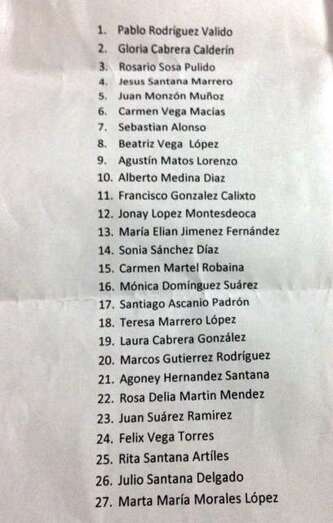 No hubo sorpresas respecto a lo adelantado por TELDEACTUALIDAD, salvo el ligero cambio de que la concejala Gloria Cabrera, excomponente de Nueva Canarias que abandono estas siglas y forma parte del grupo municipal de los no adscritos, va en el número dos, a la que sigue la dirigente vecinal y activista social, Saro Pulido (3), como independiente, tal y como avanzó este mismo viernes este diario digital. Los siguientes puestos están ocupados por el funcionario y folclorista Suso Santana (4), el presidente local de CC, Juan Monzón (5); Carmen Vega (6), secretaria de los jóvenes de CC de Telde, y Sebastián Alonso (7), presidente de la Cooperativa de Empresarios Taxistas de esta ciudad.