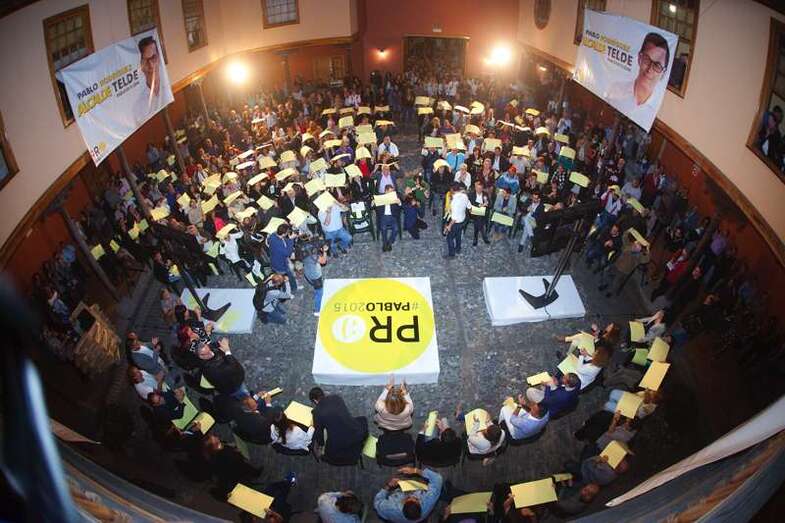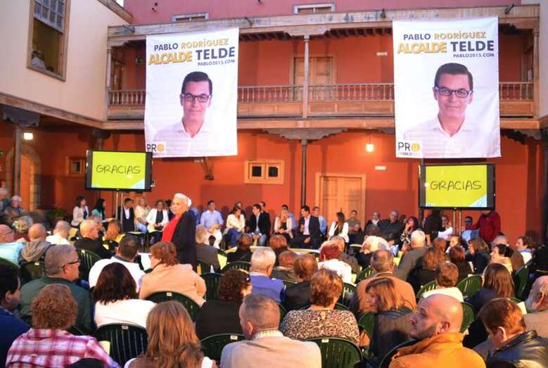 Telde.- A tope. El acto electoral de presentación de la candidatura de Coalición Canaria al Ayuntamiento de Telde congregó esta noche a más de 500 personas en el patio y exteriores de la histórica Casa Condal de San Juan.