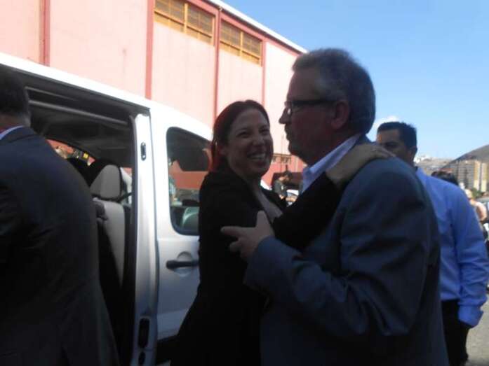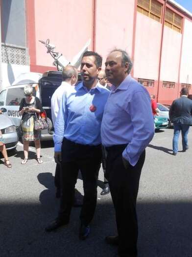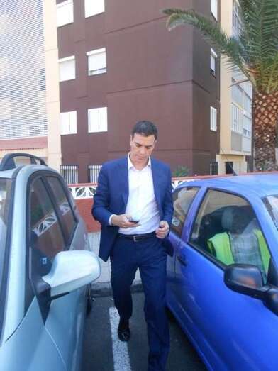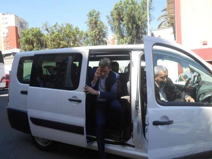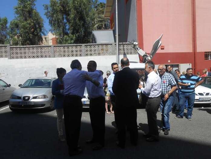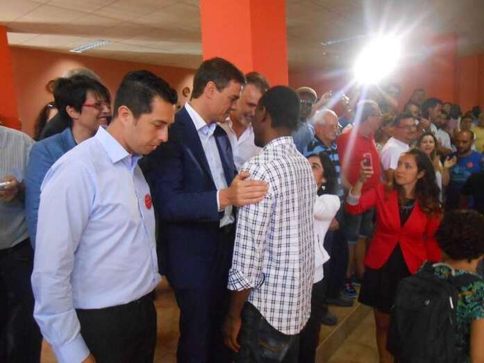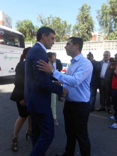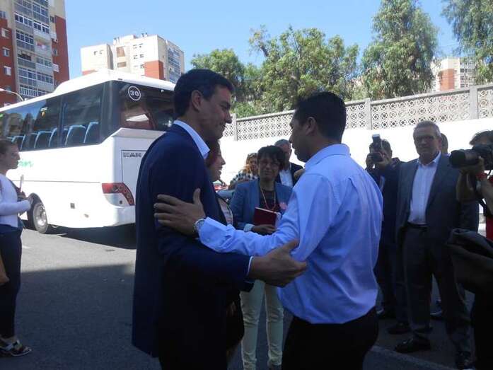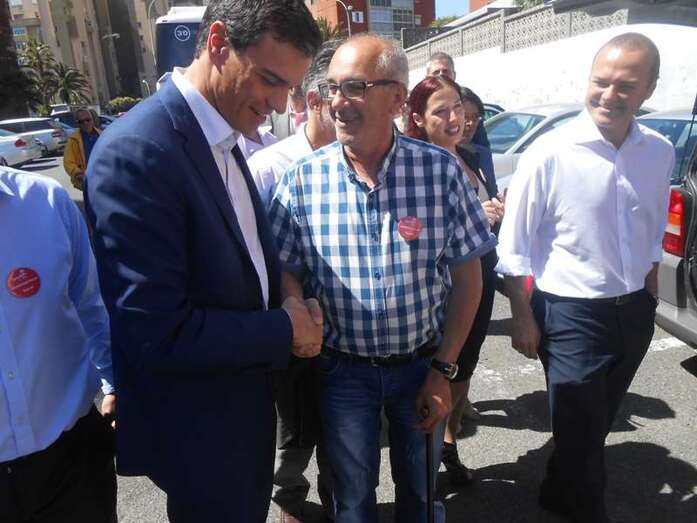 Sánchez saluda efusivamente a dos históricos del PSOE teldense, Antonio Ortega y Francisco Munguía, en Jinámar (Foto TA) Sánchez saluda efusivamente a dos históricos del PSOE teldense, Antonio Ortega y Francisco Munguía, en Jinámar (Foto TA)
