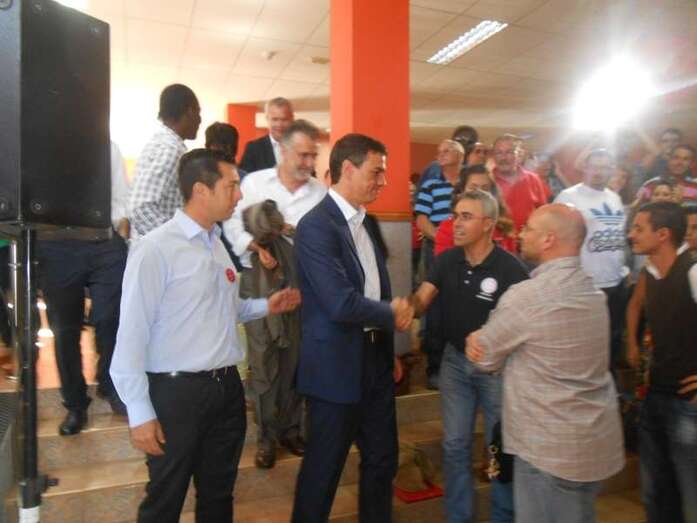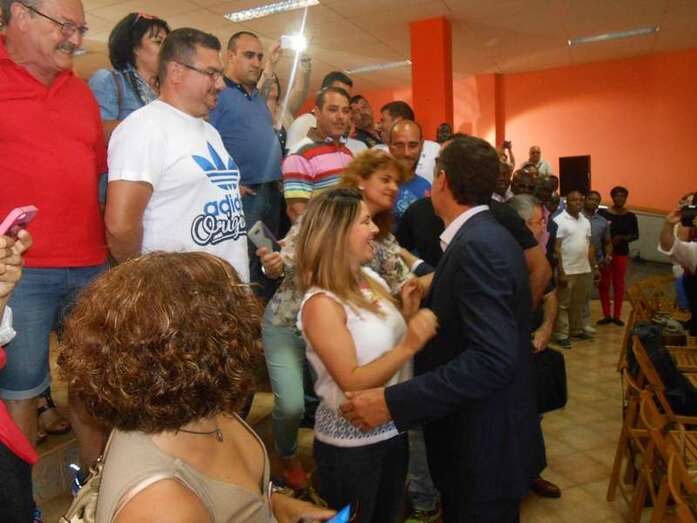 El acto tuvo lugar en torno a las once de la mañana en el local social de la Asociación de Vecinos Xinaguada, después de un desayuno oficial y horas antes de que el líder socialista, Pedro Sánchez, diera un mitin en el recinto de Infecar.