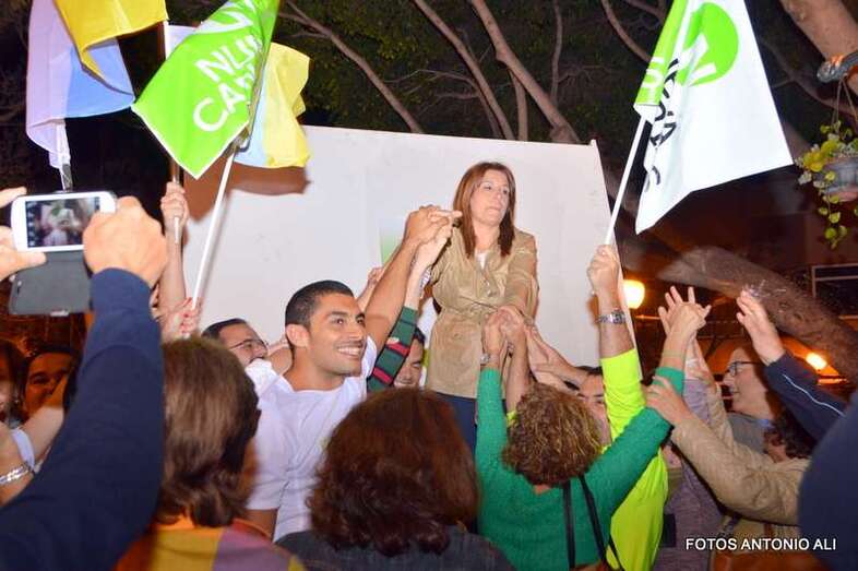 Telde.- La ciudad de Telde ya vive inmersa en el frenesí político de la campaña electoral. Con puntualidad británica, arrancaba a las 00.00 horas de este viernes la tradicional pegada de carteles en la plaza de Los Llanos. Un acto simbólico en el que han participado 9 de los 14 partidos que concurren a las elecciones locales en el municipio. El hecho anecdótico lo aportó el candidato de Roque de Gando, Sebastián Henríquez, al hacer su aparición a lomos de un caballo. TA ofrece crónica y varios reportajes gráficos del arranque de la campaña electoral.