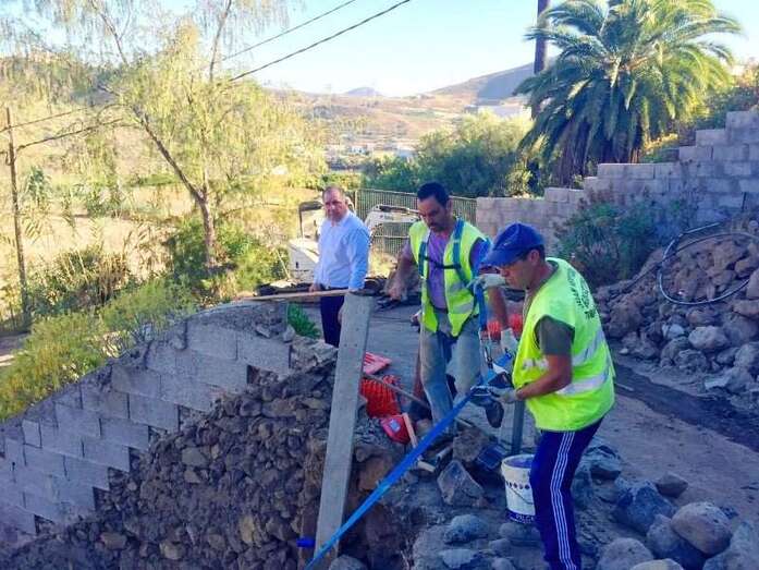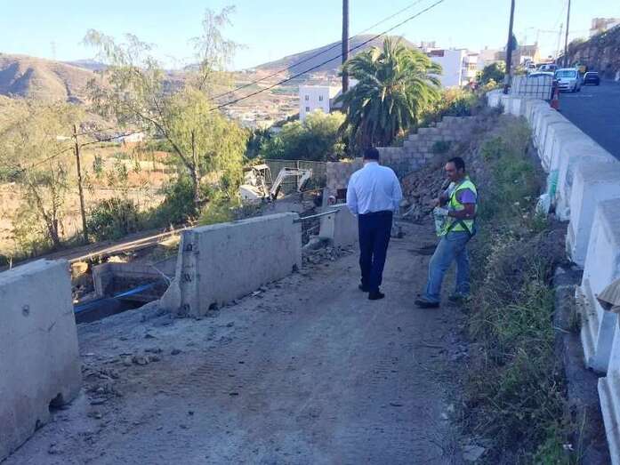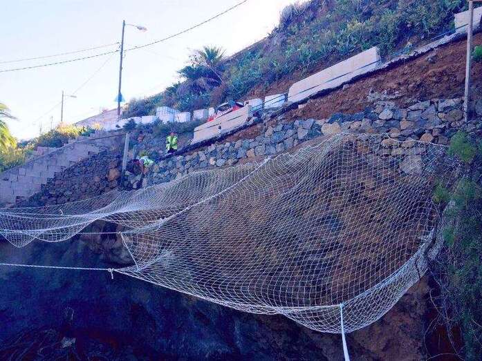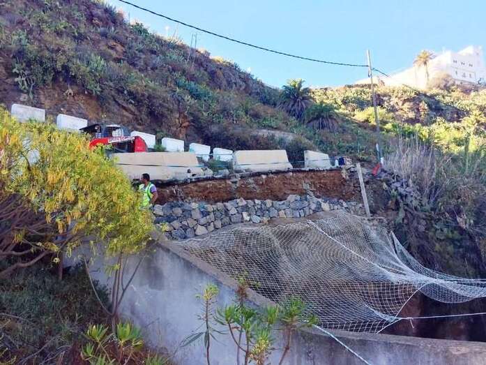 El edil de Obras, Juan Martel, explica que cuando los trabajos estaban ya avanzados se dieron cuenta de que se estaba resquebrajando uno de los muros sobre los que descansaba la pista que bajaba hasta el campo, según publica Canarias7.