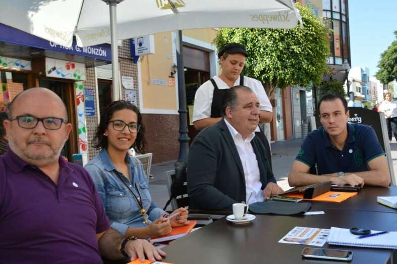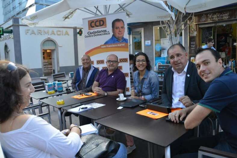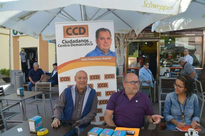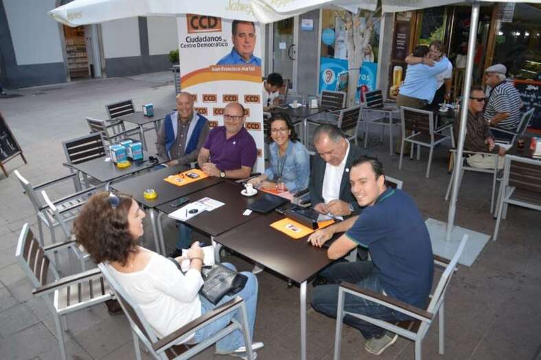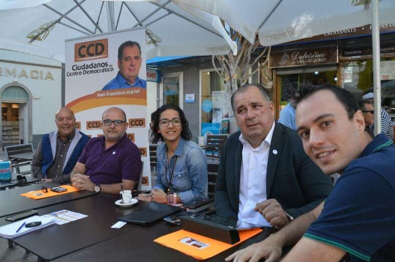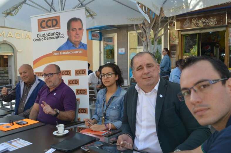 El candidato a la Alcaldía hizo estas aseveraciones durante la rueda de prensa organizada por el CCD en una terraza de la zona peatonal de Los Llanos de Telde, en la que estuvo acompañado por miembros de su lista, entre ellos el número 2 Carlos La-Chica, portavoz del partido; Raúl Castellano, responsable de campaña y número 3; María López, encargada del proyecto de Gobierno y número 5, y el coordinador de comunicación y también candidato Ezequiel López.