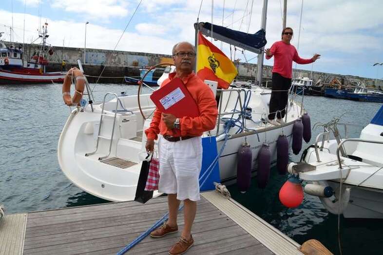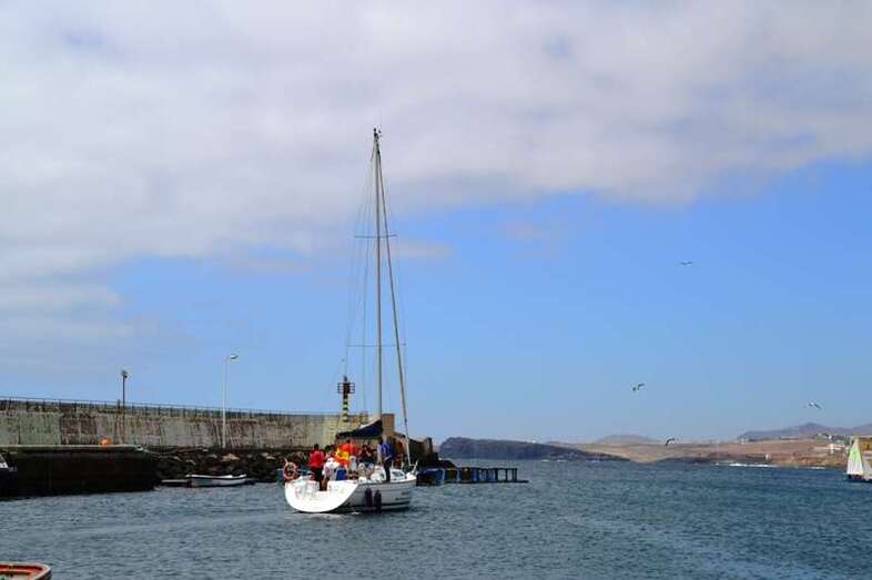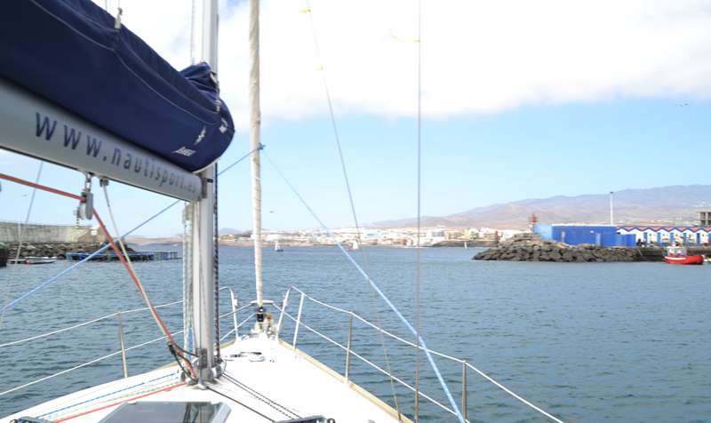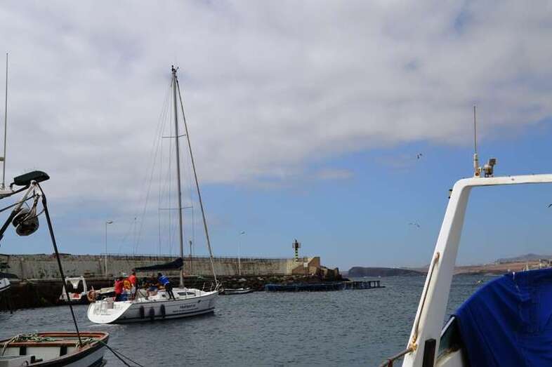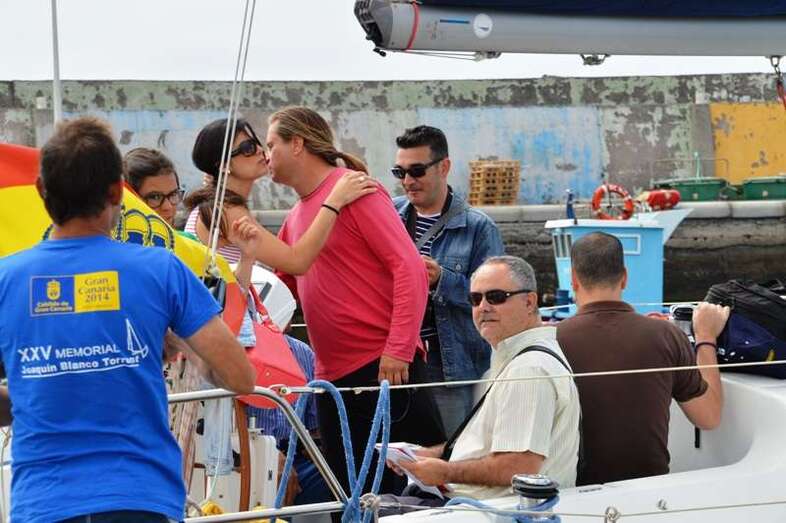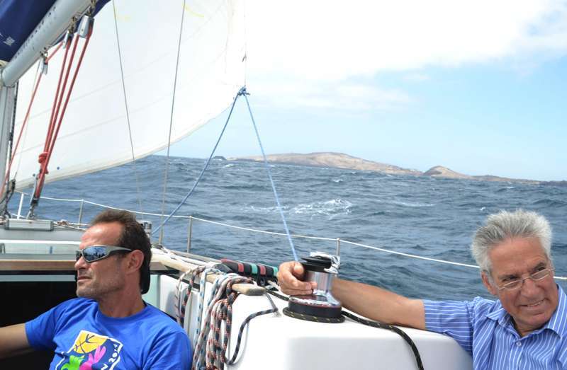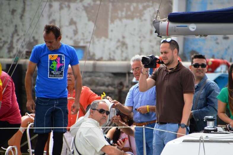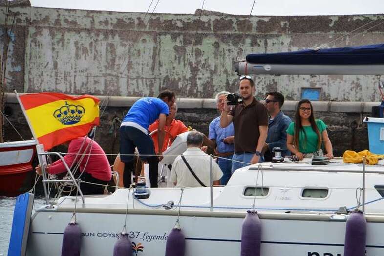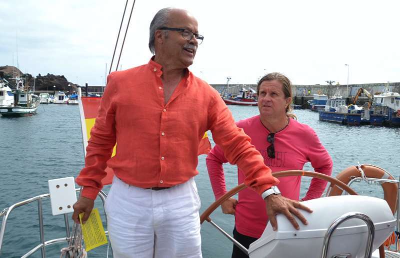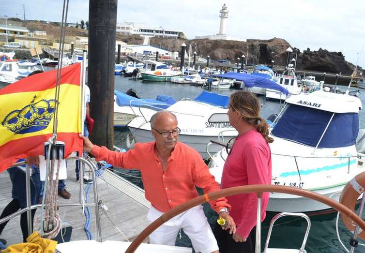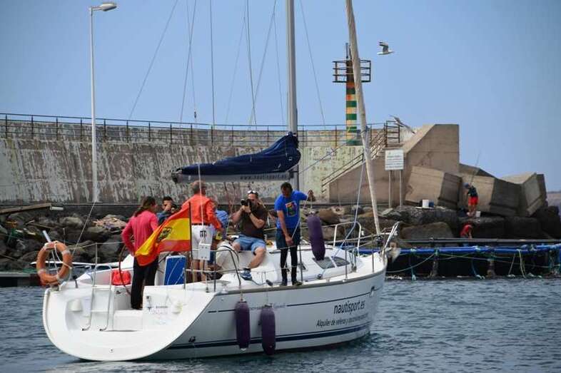 El velero Rebeca y Samuel, un Jeanneau de 37 pies, con Miguel Beneyto como patrón, zarpó a las 11.20 horas del pantalán número 2 del puerto de Taliarte rumbo al Roque de Gando. A motor, enfiló en pocos minutos la bocana del muelle y con el foque ya izado, la embarcación, con informadores de distintos medios y el político Henríquez a bordo, inició la singladura que les llevaría hasta el Roque de Gando.