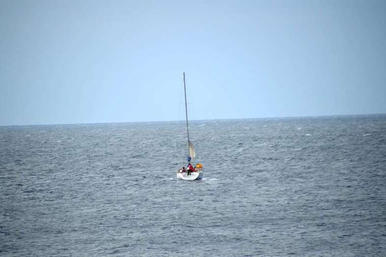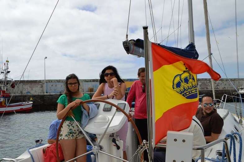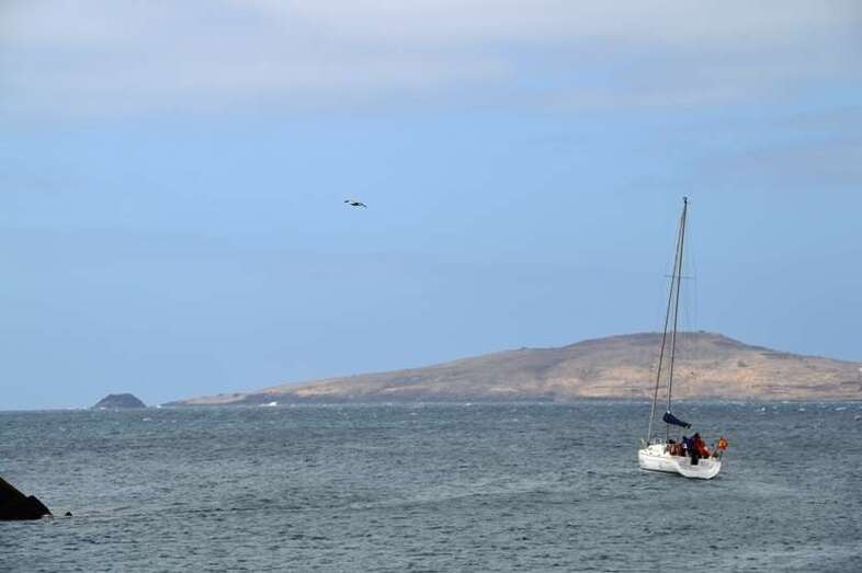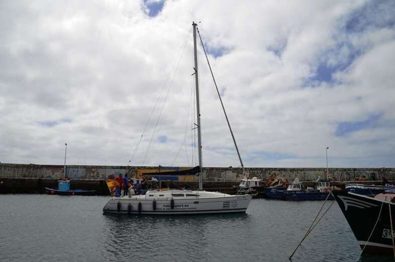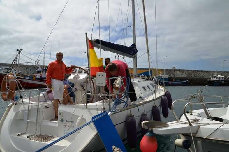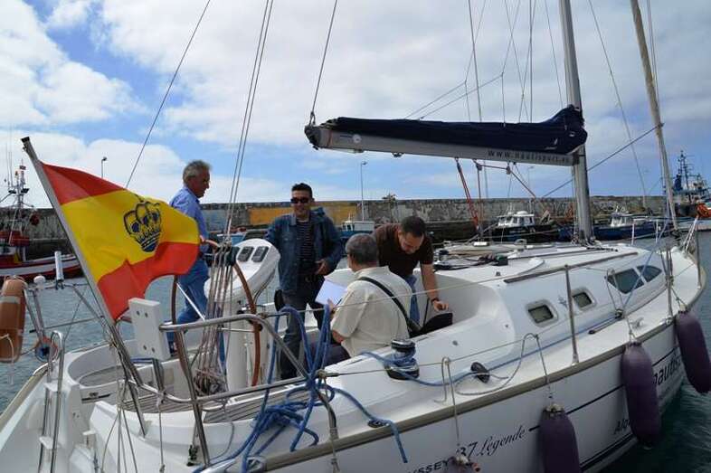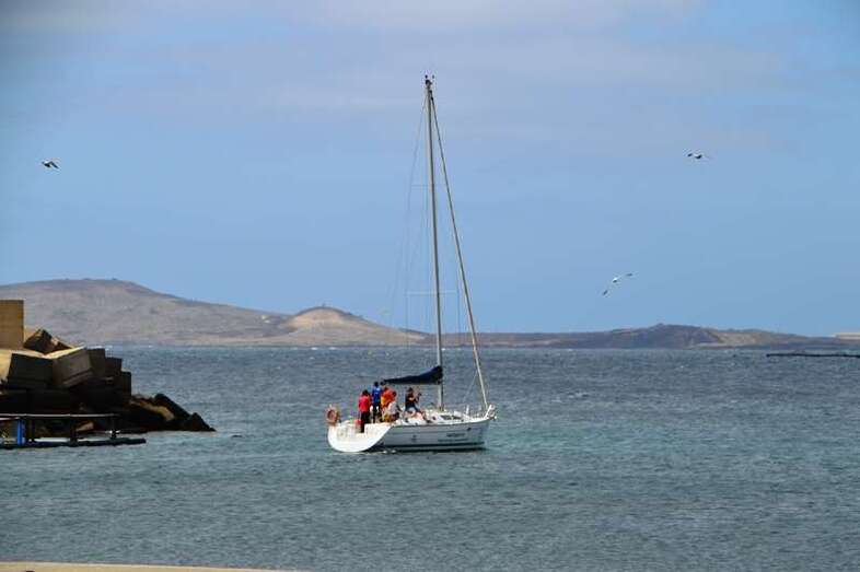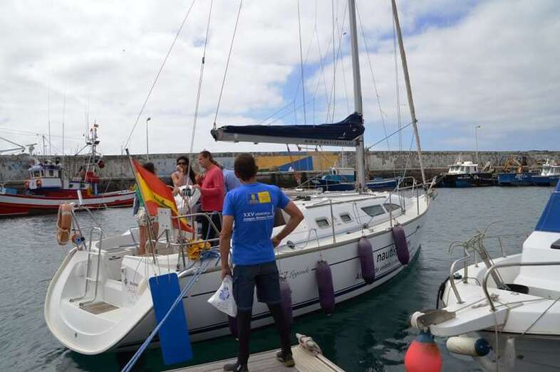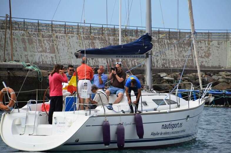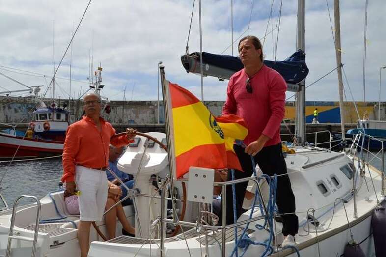 El velero Rebeca y Samuel, un Jeanneau de 37 pies, con Miguel Beneyto como patrón, zarpó a las 11.20 horas del pantalán número 2 del puerto de Taliarte rumbo al Roque de Gando. A motor, enfiló en pocos minutos la bocana del muelle y con el foque ya izado, la embarcación, con informadores de distintos medios y el político Henríquez a bordo, inició la singladura que les llevaría hasta el Roque de Gando.
