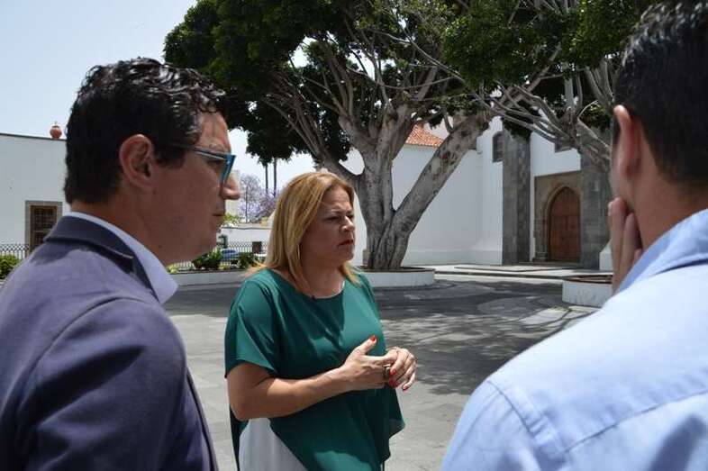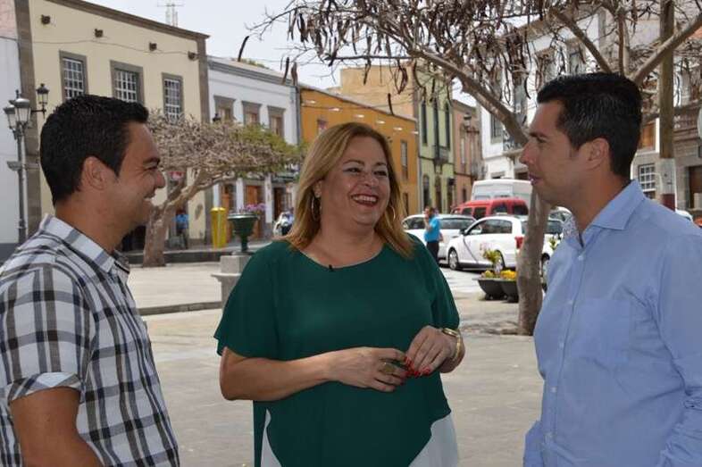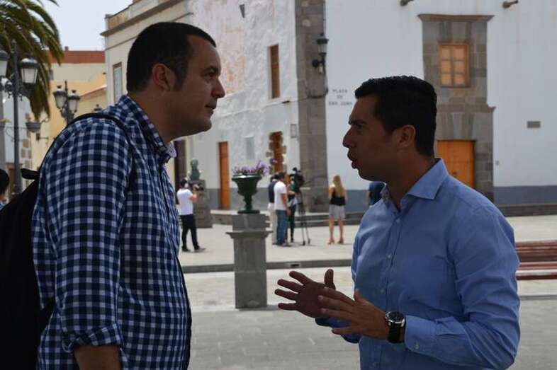 Carmen Hernández, de Nueva Canarias, y Pablo Rodríguez, de Coalición Canaria, conversaron amistosamente, como también lo hizo el líder de CC con la actual alcaldesa y candidata del PP, Mari Carmen Castellano, a quien la cadena televisiva entrevistó algo alejado de la sombra de los grandes árboles de San Juan, delante de la puerta principal de la Basílica de Telde, en la plaza de arriba.