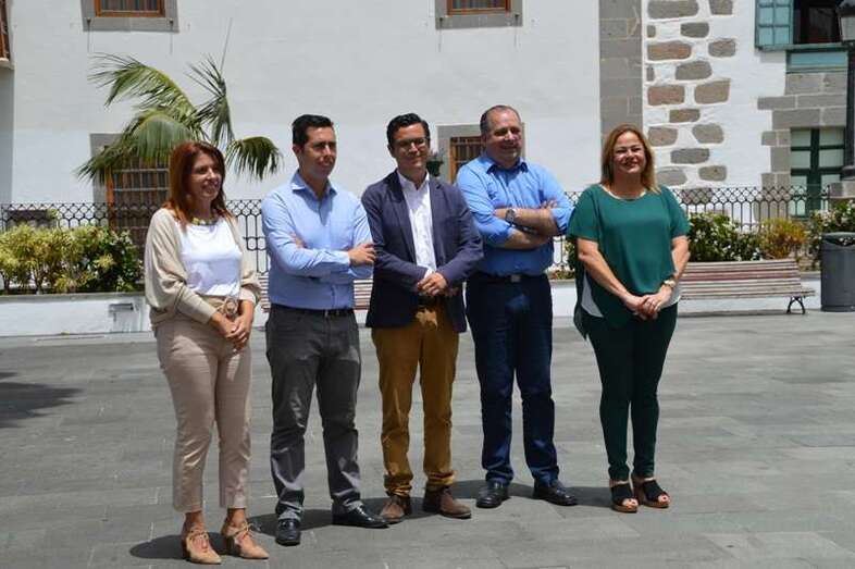 Telde.- Cinco candidatos de los 14 que concurren a la Alcaldía de Telde se vieron este mediodía las caras en la plaza de San Juan, frente a la puerta de las Casas Consistoriales que aspiran a llevar las riendas a partir del próximo 24 de mayo. Los reunió la cadena televisiva Antena 3 en Canarias y allí posaron de forma conjunta. TA avanza imágenes del encuentro de estos líderes políticos, el primero que se produce en la campaña electoral en curso.