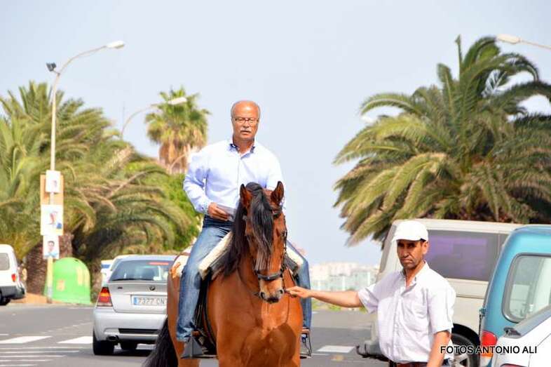 Chano Henríquez continúa rompiendo los esquemas del marketing político. A sus sonadas irrupciones en el arranque de la campaña electoral, hoy ha sumado una nueva hazaña, al cabalgar el Valle de Jinámar repartiendo papeletas y explicando a los vecinos las bases de su proyecto para alcanzar el bastón de mando del Ayuntamiento de Telde.