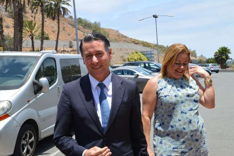 José Manuel Soria, este mediodía en Telde flanqueado por Mari Carmen Castellano (i) y Australia Navarro (d) (Foto TA) José Manuel Soria, este mediodía en Telde flanqueado por Mari Carmen Castellano (i) y Australia Navarro (d) (Foto TA)
