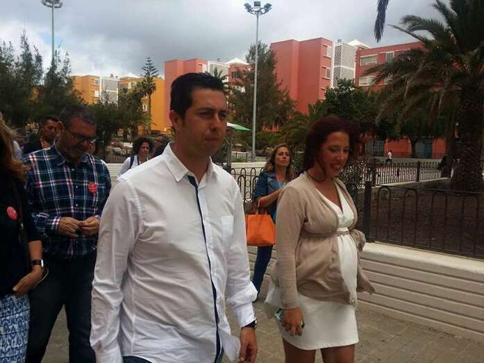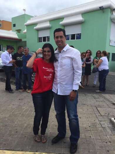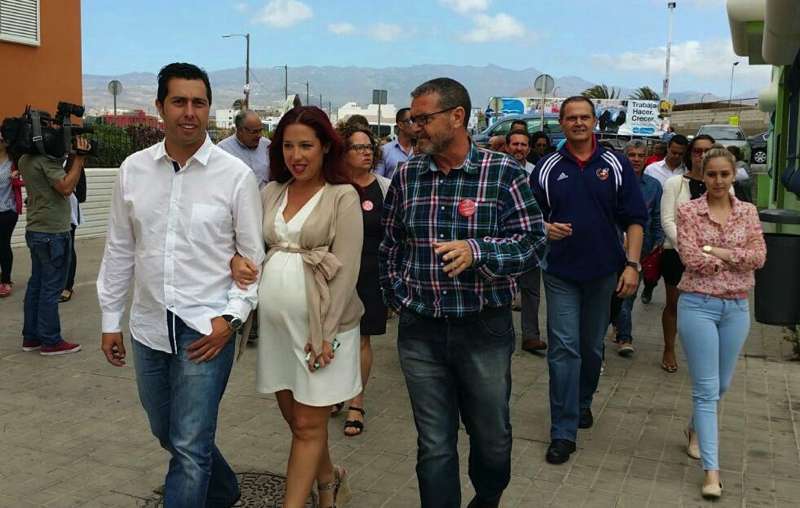 Los socialistas teldenses Alejandro Ramos (i) y Gregorio Viera (d), acompañando esta mañana a Patricia Hernández por Las Remudas (Foto TA) Los socialistas teldenses Alejandro Ramos (i) y Gregorio Viera (d), acompañando esta mañana a Patricia Hernández por Las Remudas (Foto TA)
