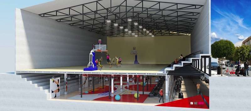 En esencia, esta propuesta plantea modificar el actual pabellón donde se ubica la cancha deportiva, que está bajo la rasante de la calle. La idea consiste en reconstruir esa cancha a la altura de la rasante y desplazarla hacia el Este para que las futuras gradas se ubiquen en el lado calle del pabellón, y no donde están ahora, que es justo en el lado contrario. El espacio que quedaría debajo de la cancha se aprovecharía entonces para montar una sala de musculación de 850 metros cuadrados, solo equiparable a la de la Ciudad Deportiva Gran Canaria, en la capital.