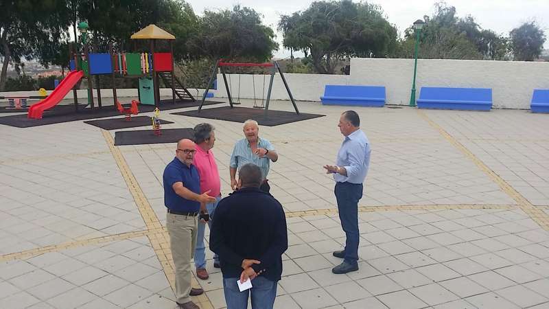 Martel recorrió las calles de este pago teldense respondiendo a una invitación de la Asociación de Vecinos de Hoya Aguedita con el fin de comprobar el estado de los espacios y servicios públicos, y constató la necesidad de solucionar las carencias de la plaza del barrio.