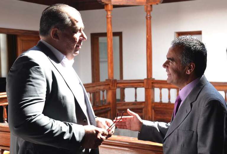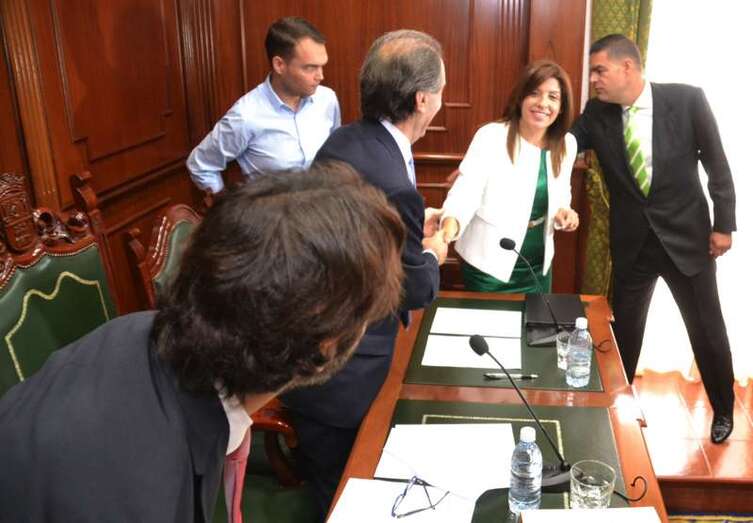 La sesión de investidura se inició minutos después de las 11.00 horas con el secretario municipal, Ángel Sutil, como maestro de ceremonias. Tras constituirse la mesa -con el edil electo de mayor edad, José Suárez (PP), y el más joven, Guillermo Eugenio (Se Puede Ganar)-, se dio paso a los juramentos, la imposición de medallas y la toma de posesión de las veintisiete personas que desde hoy ocupan los escaños de la sala noble de la Institución local.