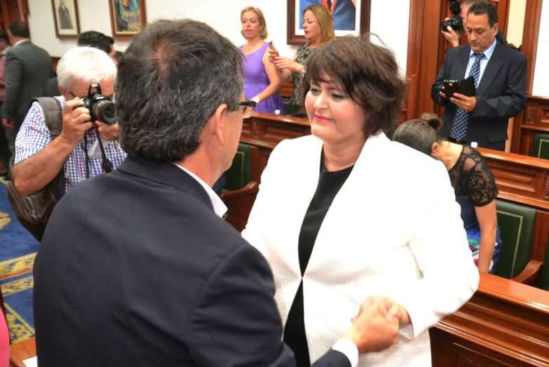 Ya antes de la investidura, Hernández fue recibida cálidamente en el salón de Plenos, en una sesión que contó con el respaldo del presidente de NC, Román Rodríguez; el de la consejera insular electa, Inés Jiménez; el de su exasesora y también consejera electa, Minerva Alonso, y del exalcalde del municipio, Francisco Santiago. A la sesión también asistieron el exsenador y exconcejal socialista José Alcaraz y el actual director de la Agencia de Proteción de Medio Natural y Urbano de Canarias, Juan José Rodríguez Guerra, así como el cronista oficial de la ciudad, Antonio María González Padrón, entre otras personas.