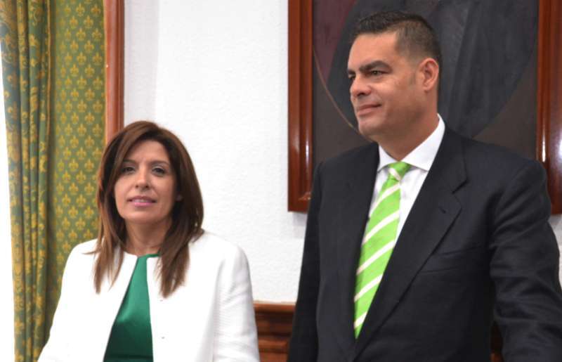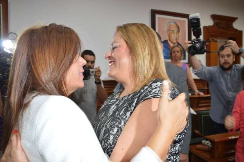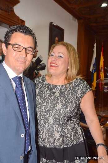 A las 11.40, Carmen Hernández era investida como nueva alcaldesa de la ciudad, produciéndose una de las escenas representativas de la jornada cuando recibió de la alcaldesa saliente, Mari Carmen Castellano, el bastón de mando de la Corporación. Un momento que simboliza el traspaso de poderes a la desde hoy primera regidora del municipio.