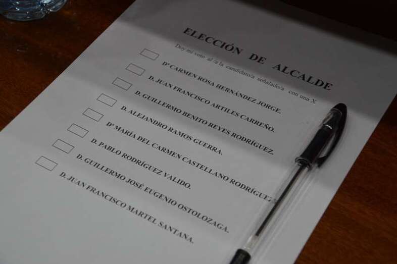 Una vez conformado el Pleno municipal se procedió a la votación secreta para proclamar la Presidencia de la nueva Corporación. El proceso no registró sorpresa y justamente a las 11.36 horas Carmen Hernández, cabeza de la fuerza más votada en las pasadas elecciones del 24 de mayo, acaparaba 16 de los 27 cargos electos. Quizás, lo que llamó la atención fue, salvo el PP, que el resto de los grupos de la oposición votaran en blanco.