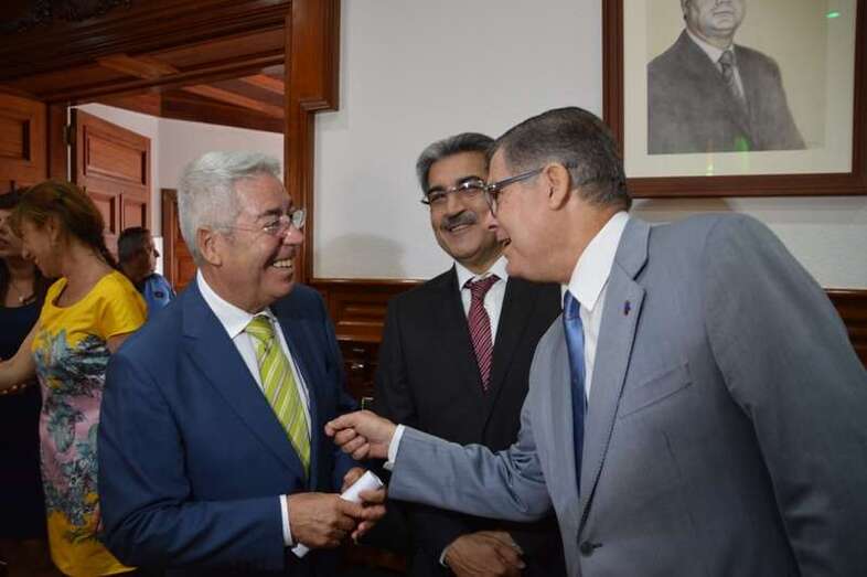 Román Rodríguez, con miembros de su partido y el socialista Gumersindo Hernández (Foto TA) Román Rodríguez, con miembros de su partido y el socialista Gumersindo Hernández (Foto TA)