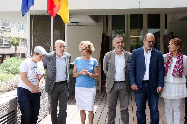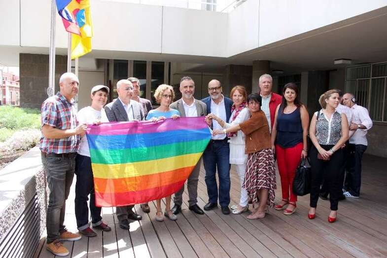 Telde.- Las consejeras teldenses Inés Jiménez y Minerva Alonso, ambas de Nueva Canarias, se sumaron este lunes al acto del Cabildo de Gran Canaria para reivindicar los derechos de los menores transexuales, para lo que se izó su bandera en la Casa Palacio. El presidente de la corporación, Antonio Morales, y representantes de Gamá LGTB presidieron el izado de la bandera.