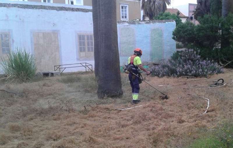 Los operarios municipales procedieron a eliminar toda la vegetación amontonada, las hierbas secas los enseres que se acumulaban atentando contra la integridad de uno de los emblemáticos edificios que conforman el patrimonio histórico de Telde.