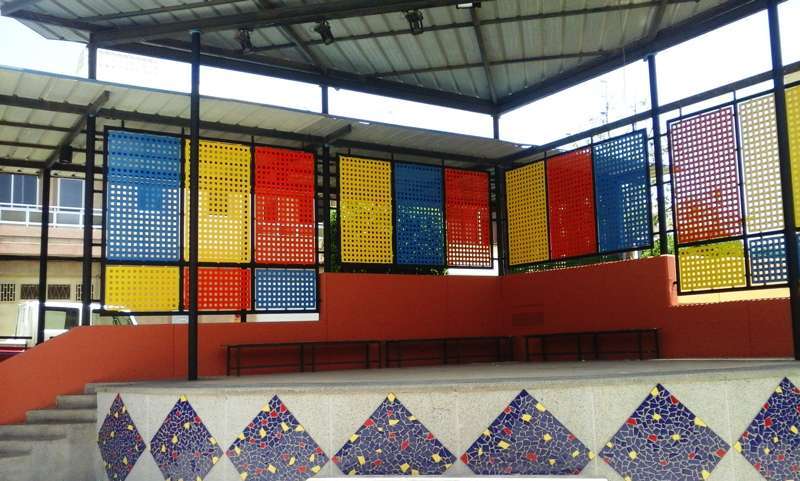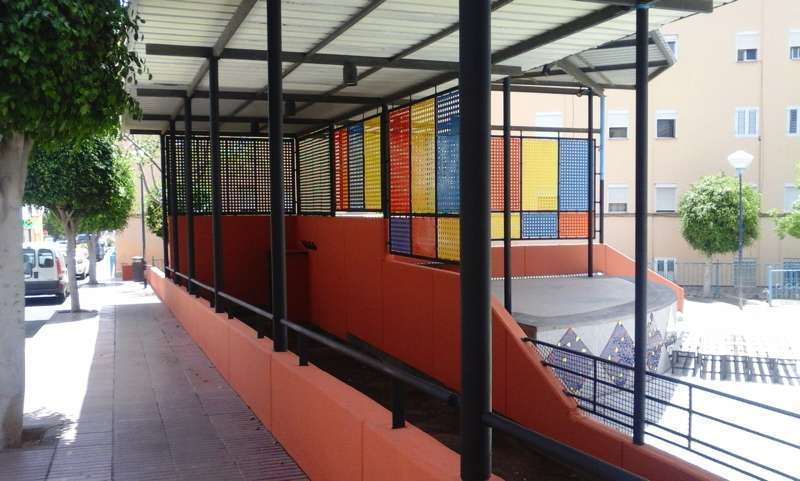 En esta ocasión, los operarios municipales han efectuado trabajos de adecentamiento de la plaza de Las Huesas, consistentes en la pintura de los muros, el arreglo del escenario y las pérgolas anexas.