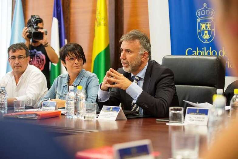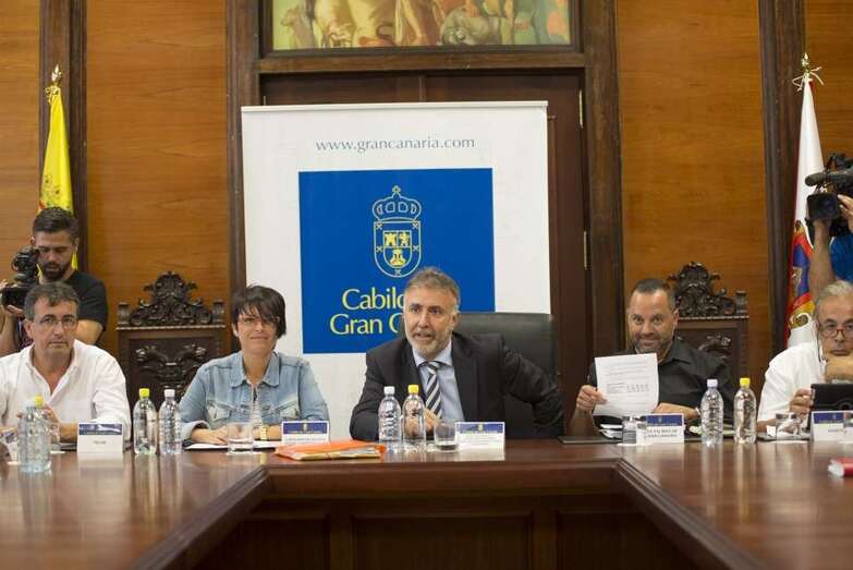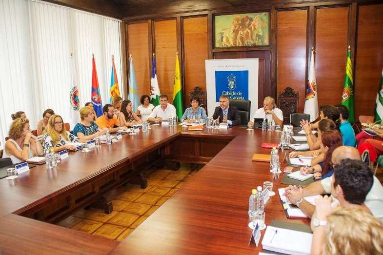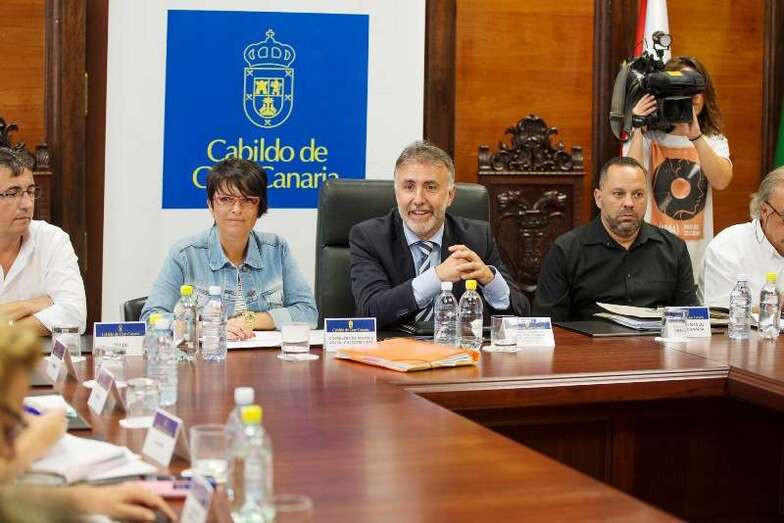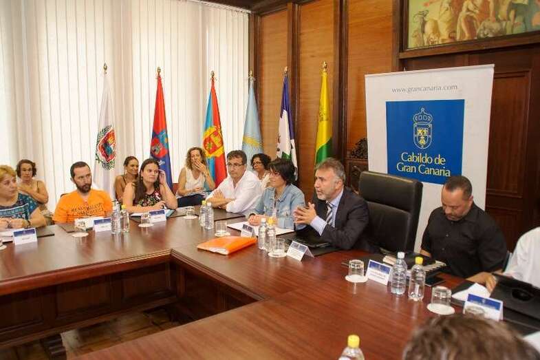 El presidente en funciones del Cabildo de Gran Canaria, Ángel Víctor Torres, mantuvo este jueves una reunión con representantes de cuatro ONG y de los Servicios Sociales de los 21 municipios de la isla, entre ellos Juan Francisco Artiles en su condición de alcalde en funciones de Telde.