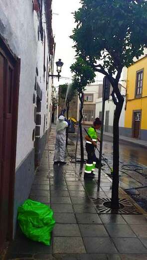 El concejal de Parques y Jardines, Álvaro Monzón, explica que “en los últimos días los ciudadanos de Telde desde muy temprano, cuando aún no ha salido el sol, han visto como los operarios limpian con aspersores los naranjeros agrios de San Juan”. Si bien estos trabajos crean incomodidad a los conductores, añade el edil, “el resultado será la recuperación de la historia de estos arbolitos que fueron plantados imitando a las grandes y lindas ciudades andaluzas”.