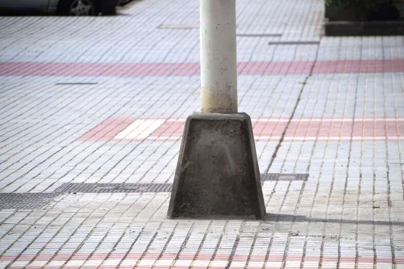 Telde.- Al igual que hiciera año atrás en el mismo lugar, el área de Alumbrado del Ayuntamiento de Telde, que dirige el edil Agustín Arencibia, ha reforzado con un prisma de hormigón la base de varias luminarias de fibra de la calle de Américo Vespucio en Salinetas que presentaban peligrosas fisuras.