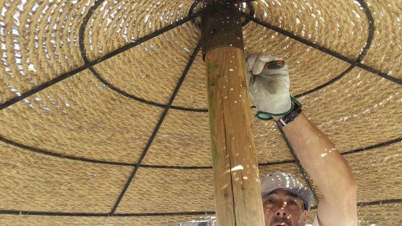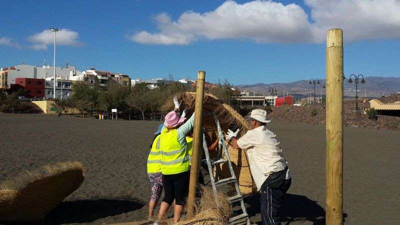 Playas repara las sombrillas de Melenara dañadas por el viento