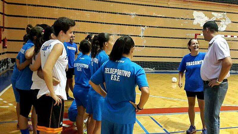 Telde.- El concejal de Actividad Física y Deportes del Ayuntamiento de Telde, Diego Ojeda, compartió una jornada de entrenamiento con las jugadores, el cuerpo técnico y los directivos del equipo Preconte Teldeportivo Fútbol Sala Femenino durante la tarde de ayer, en el polideportivo municipal Paco Artiles.