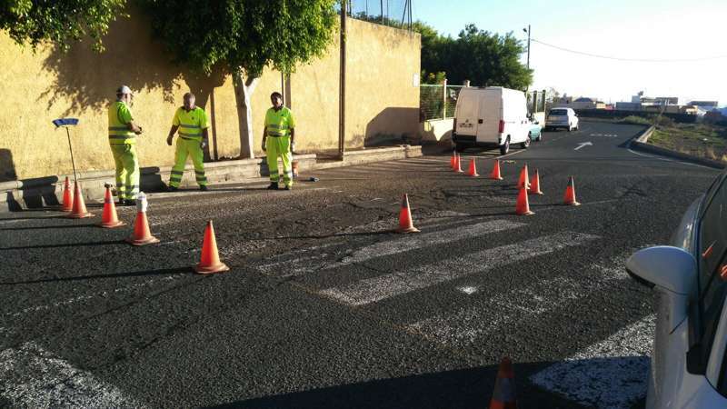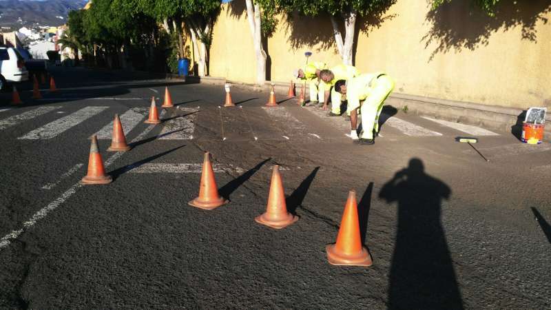 Telde.- El barrio teldense de La Herradura refuerza la visibilidad de uno de sus pasos de peatones. Y es que una cuadrilla de operarios de la concejalía de Tráfico del Ayuntamiento de Telde, que dirige Juan Martel, se encuentra pintado la señal horizontal que autoriza el tránsito peatonal situado en la calle Roque del Salmor.
