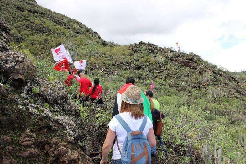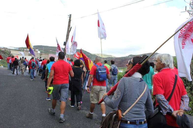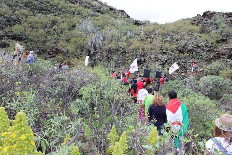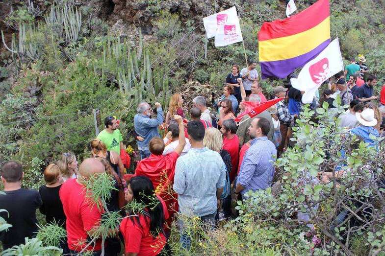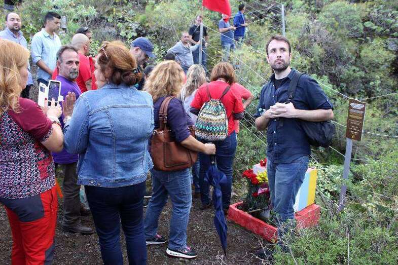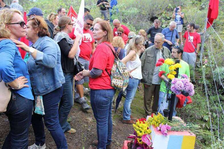 Los participantes se concentraron en la plaza pública del casco antiguo de Jinámar y a las 11.00 horas iniciaron la caminata hasta la misma boca del conducto eruptivo donde tuvo lugar una ofrenda floral y varios de los asistentes tomaron la palabra para recodar la emoria de los asesinados, "para dignificar las causas legítimas y democráticas por las que lucharon".