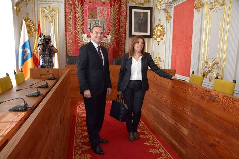El encuentro de los mandatarios de las dos ciudades más importantes de la Isla y de la provincia de Las Palmas tuvo lugar a las 11.00 horas en las Casas Consistoriales de Las Palmas de Gran Canaria, sita en la plaza de Santa Ana.