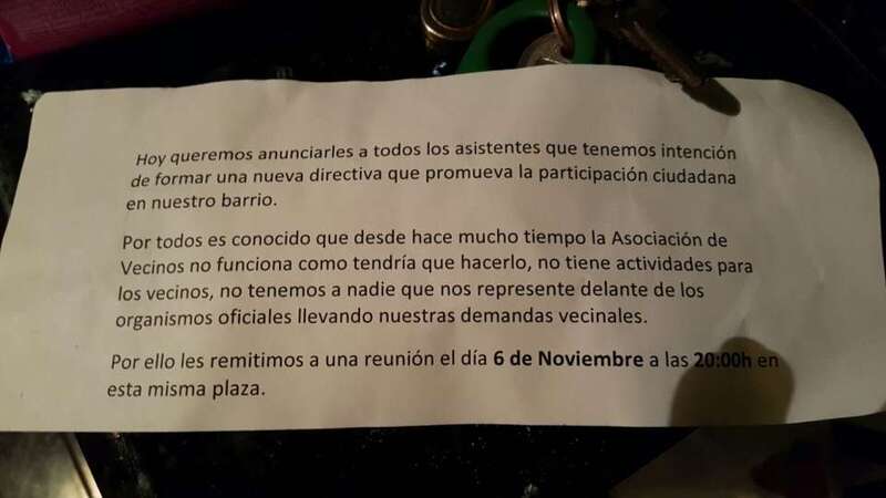 Sin ir más lejos, desde el colectivo señalan que ya se han repartido varias papeletas por el barrio convocando a los vecinos a un encuentro este viernes a las 20.00 horas con la idea de “formar una nueva directiva que promueva participación ciudadana”. Ya que, según se puede leer en estas notas, “por todos es conocido que desde hace mucho tiempo la Asociación de Vecinos no funciona como tendría que hacerlo, no tiene actividades para los vecinos, no tenemos a nadie que nos represente delante de los organismos oficiales llevando nuestras demandas vecinales”.