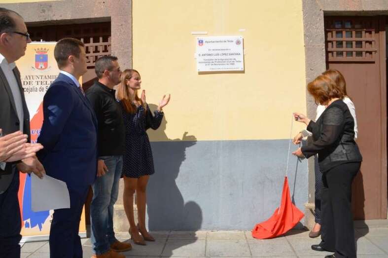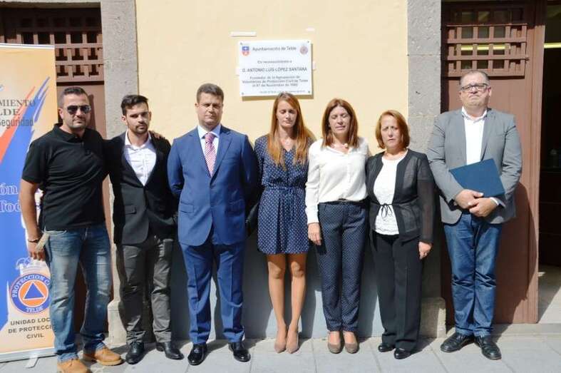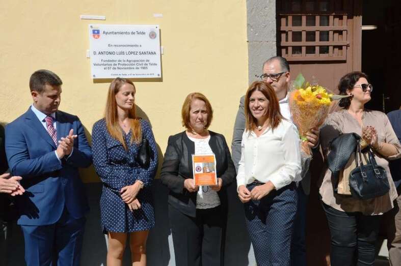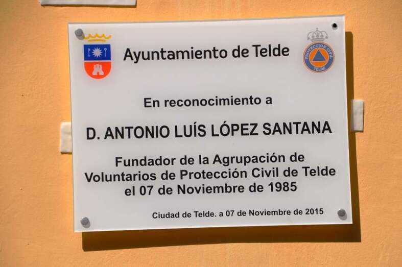 Telde.- Emoción a raudales la que se palpó este sábado en la calle de Conde de la Vega Grande, en San Juan, delante de la fachada del inmueble que alberga la sede de la Agrupación de Protección Civil, en la que se descubrió una placa en recuerdo del policía fallecido Antonio Luis López Santana, quien fue el principal propulsor y fundador hace años 30. TA avanza reportaje gráfico.