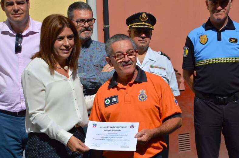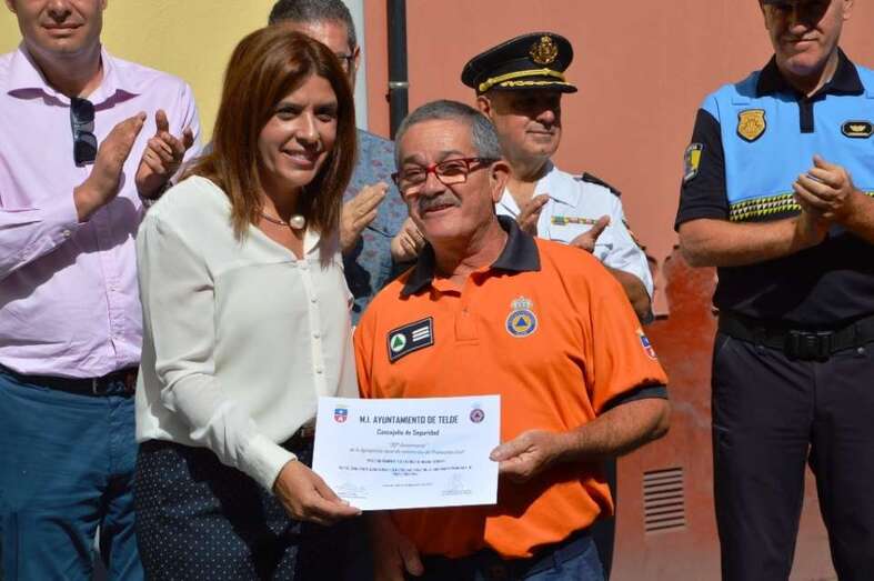 El acto finalizó con la entrega al voluntario Francisco Herrera Melián de un diploma como integrante del equipo de 15 voluntarios que impulsaron Protección Civil en Telde, a los que también se hará llegar este reconocimiento.
