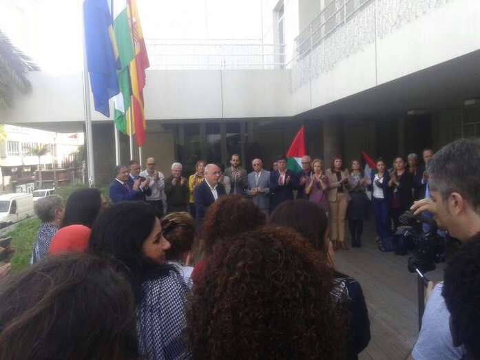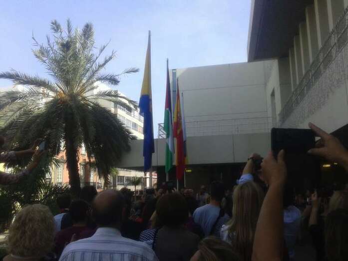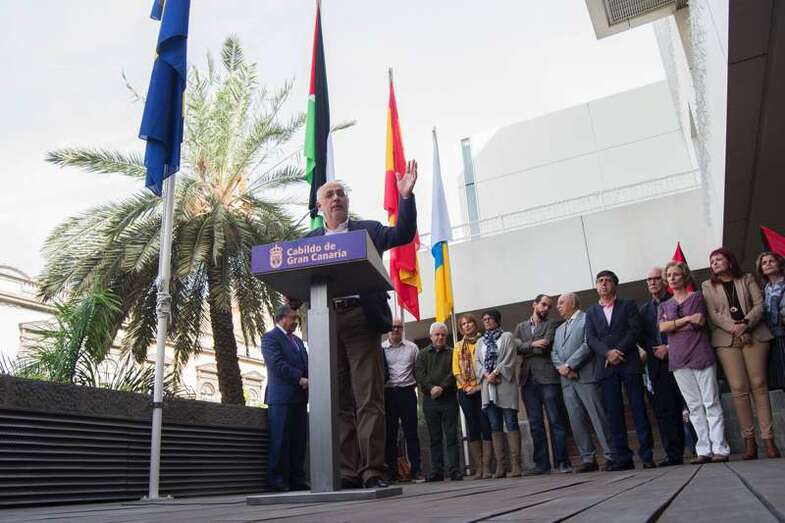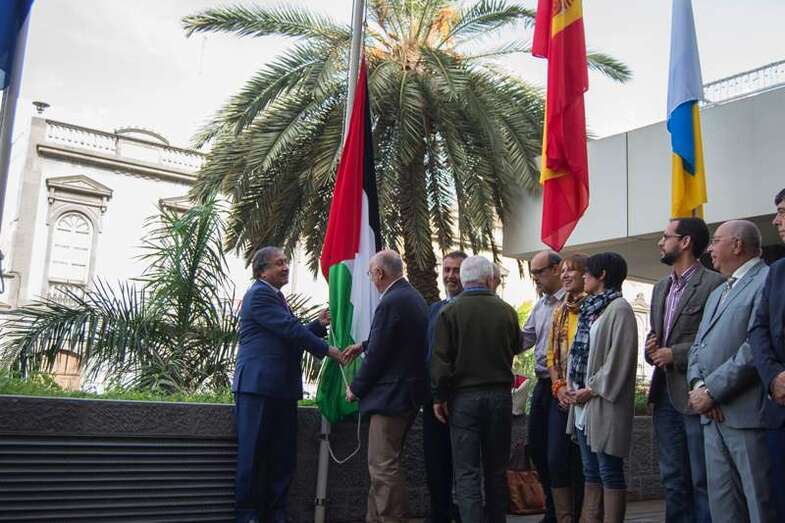 El embajador de Palestina en España, Musa Amer Odeh, izó la bandera junto a Antonio Morales en un acto que contó también con la participación de consejeros insulares, un gesto que por primera vez realiza una institución pública en España, destacó el consejero de Solidaridad Internacional, Carmelo Ramírez.