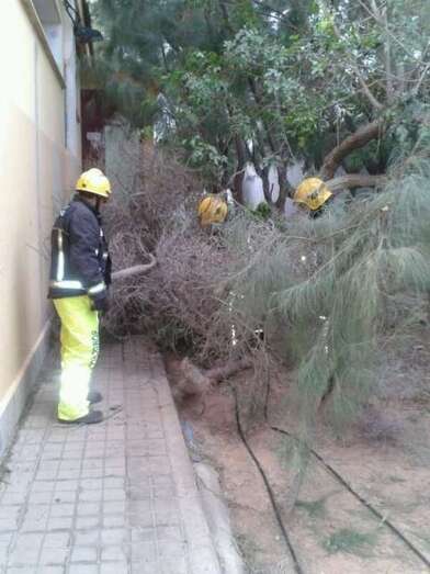 La caída de árboles y cascotes en el CEIP Príncipe de Asturias obliga a los bomberos a actuar