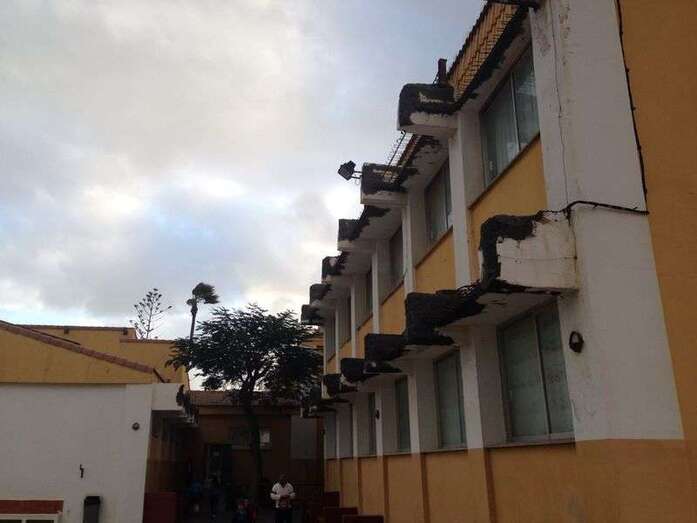 Telde.- El fuerte viento que sopla en la Isla de Gran Canaria y, en concreto, en la ciudad de Telde ha provocado esta mañana la caída de vallas, árboles y cascotes de la fachada del CEIP Príncipe de Asturias, en Melenara. El AMPA del centro denuncia que la Concejalía de Educación, entonces dirigida por la edila de Ciuca Vanesa Cruz, dejó a medias unas obras que inició para reparar los elementos más deteriorados del colegio.