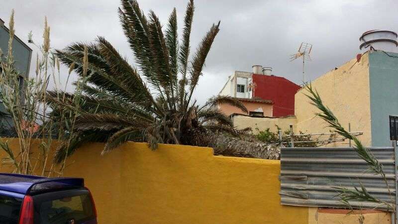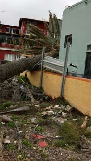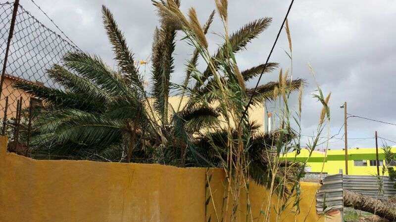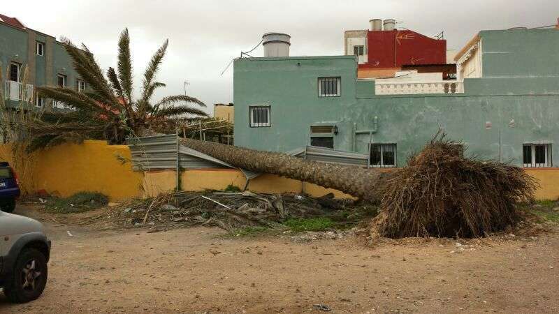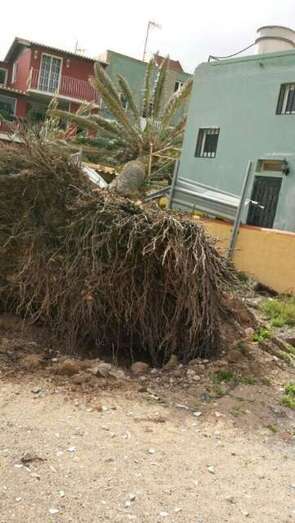 Telde.- El temporal de viento que comenzó a sentirse en la madrugada de este viernes ha dejado ya un suceso. Una palmera, de alrededor de 20 metros de altura, ha sido arrancada de raíz y se ha caído sobre un muro y el techo de una casa en el barrio de Marpequeña Alta.