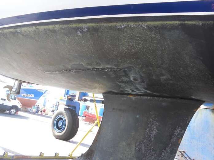 El yate se encuentra actualmente varado en las instalaciones del colectivo de pescadores con importantes desperfectos en el casco.