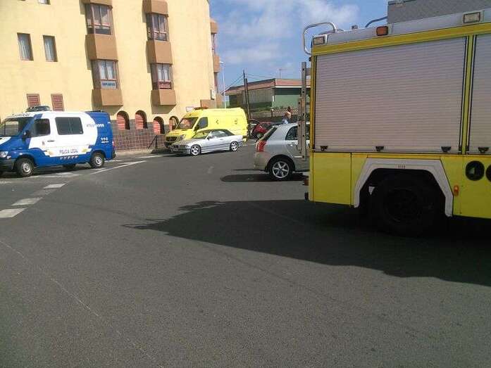 En el lugar del suceso se personaron bomberos y una ambulacia del Servicios de Urgencias Canario y dos coches de la Policía Local y del Cuerpo Nacional de Policía. La mujer fue atendida por el personal sanitario de la ambulancia.