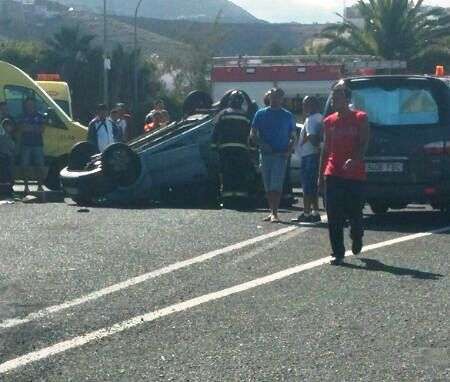 Telde.- Dos personas han resultado heridas, una de ellas en estado grave, en el vuelco de un turismo que se ha registrado en la tarde de este miércoles, minutos antes de las 18.00 horas, en el Valle de Jinámar, en el vial próximo al lugar donde se celebra el mercadillo dominical.