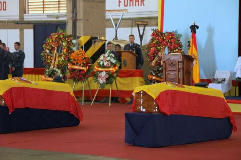 A las nueve de la mañana se abrió la capilla ardiente en el edificio de la estafeta militar en la Base Aérea de Gando, contiguo al hangar del 802 Escuadrón, donde se desarrollaron las honras fúnebres, sin desfile militar terrestre ni aéreo